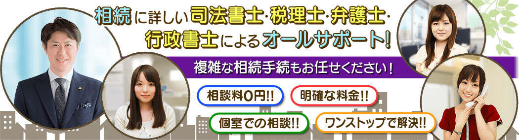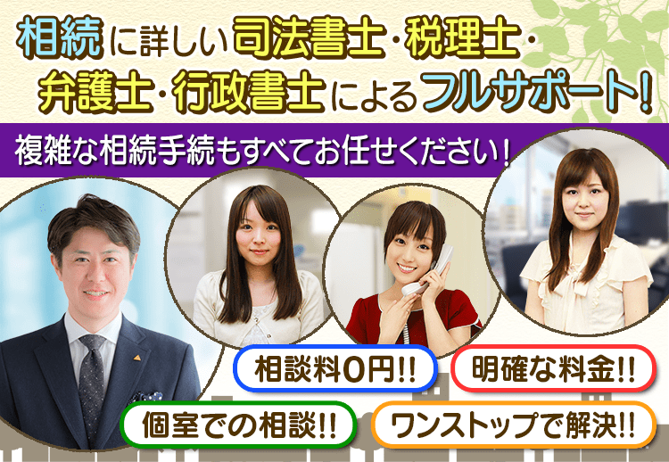 司法書士・行政書士・弁護士・税理士といった専門家が、相続のお悩みを解決するために尽力します。相続の手続きなどにお悩みの方は、お気軽にご相談ください。